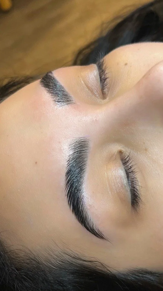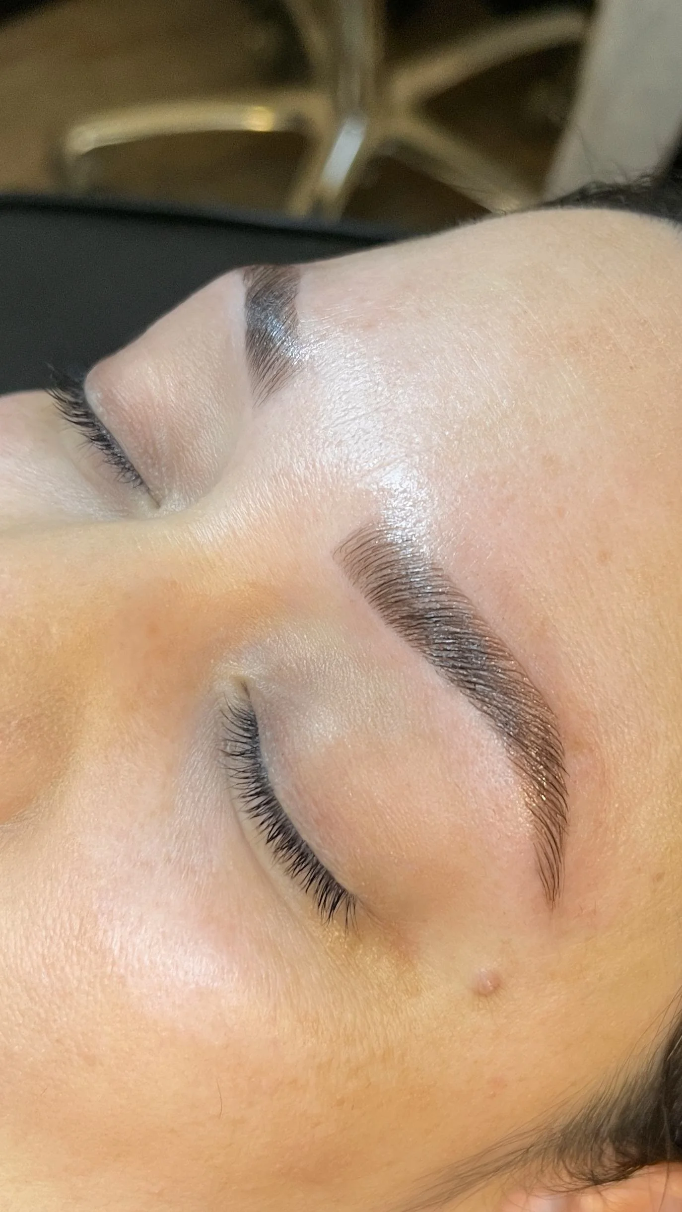 Brow tinting involves applying a semi-permanent dye to the eyebrows to enhance their color and definition, lasting 4-6 weeks. Great for those with lighter hairs & prefer a more natural, less filled-in look.